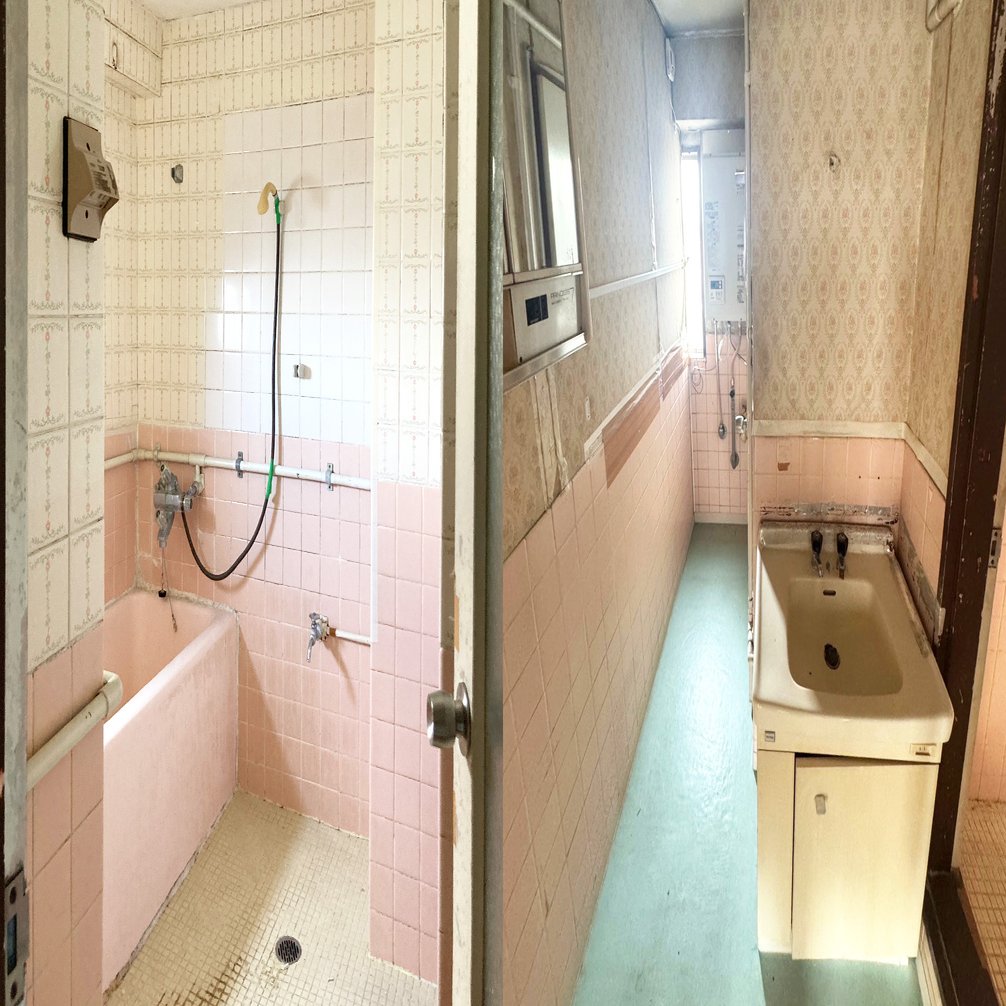 壁紙や床材には経年による変化が見られ、浴室やキッチンといった水まわり設備も、当時の仕様のままです。